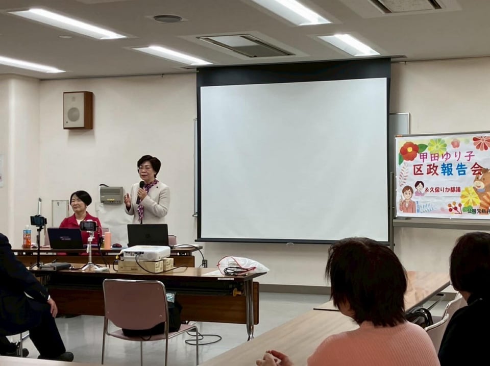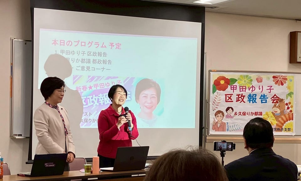 1月14日に、久保りか都議とともに、「甲田ゆり子区政報告会」を開催しました。